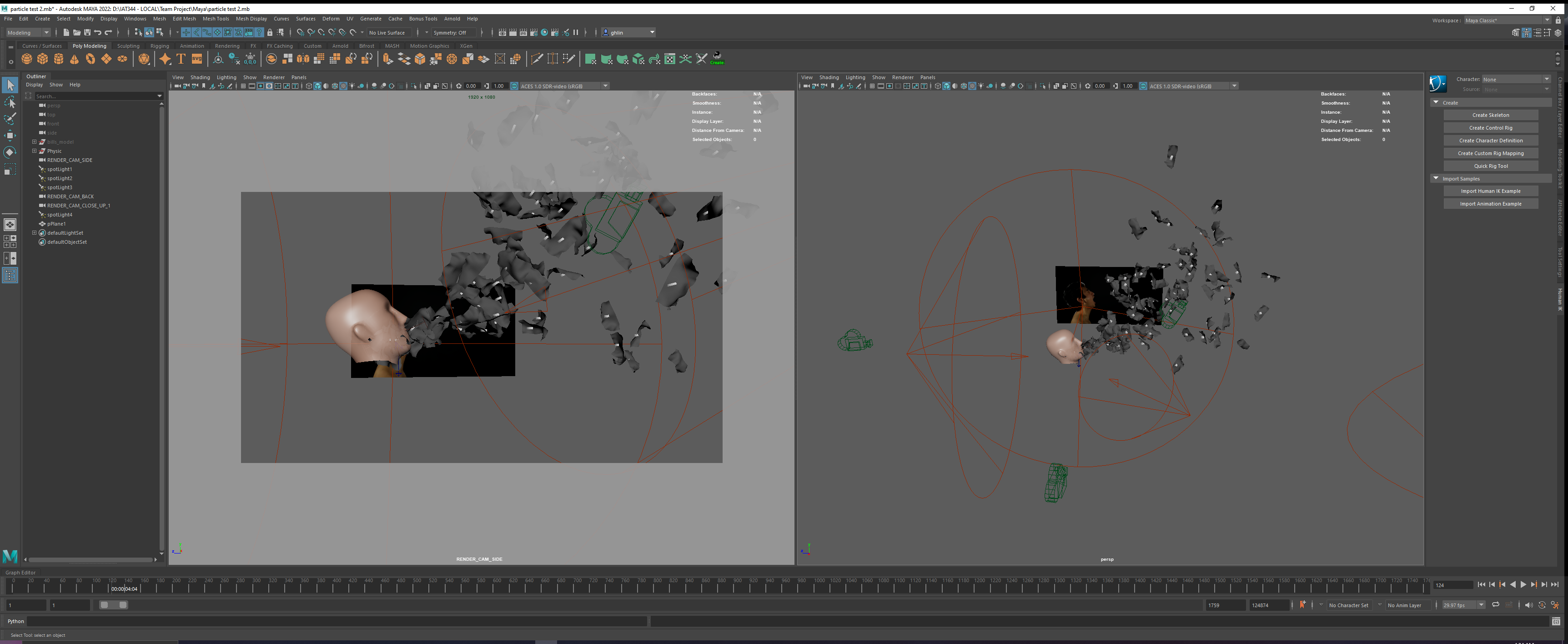 While my teammate focused on video editing, I was solely in charge of the visual effects. I modeled and textured the 50 Canadian dollar bills, and then simulated the wind and particle physics in Maya. To make this visual effect more realistic, I imported the corresponding video footage into Maya and used it as a reference for the lighting and the head movement, so that the bills will accurately spawn from the right location as where my mouth is in the footage. In the first iteration of this effect, I received feedback from my peers and teacher assistant that it was too difficult to see what exactly the objects were due to the motion blur and they also didn’t think they look like money bills flying in the air as they were sprawling out too quickly. Therefore, I decreased the motion blur to a very subtle degree, reduced the amount of the bills, and slowed down their motion in the second iteration.
