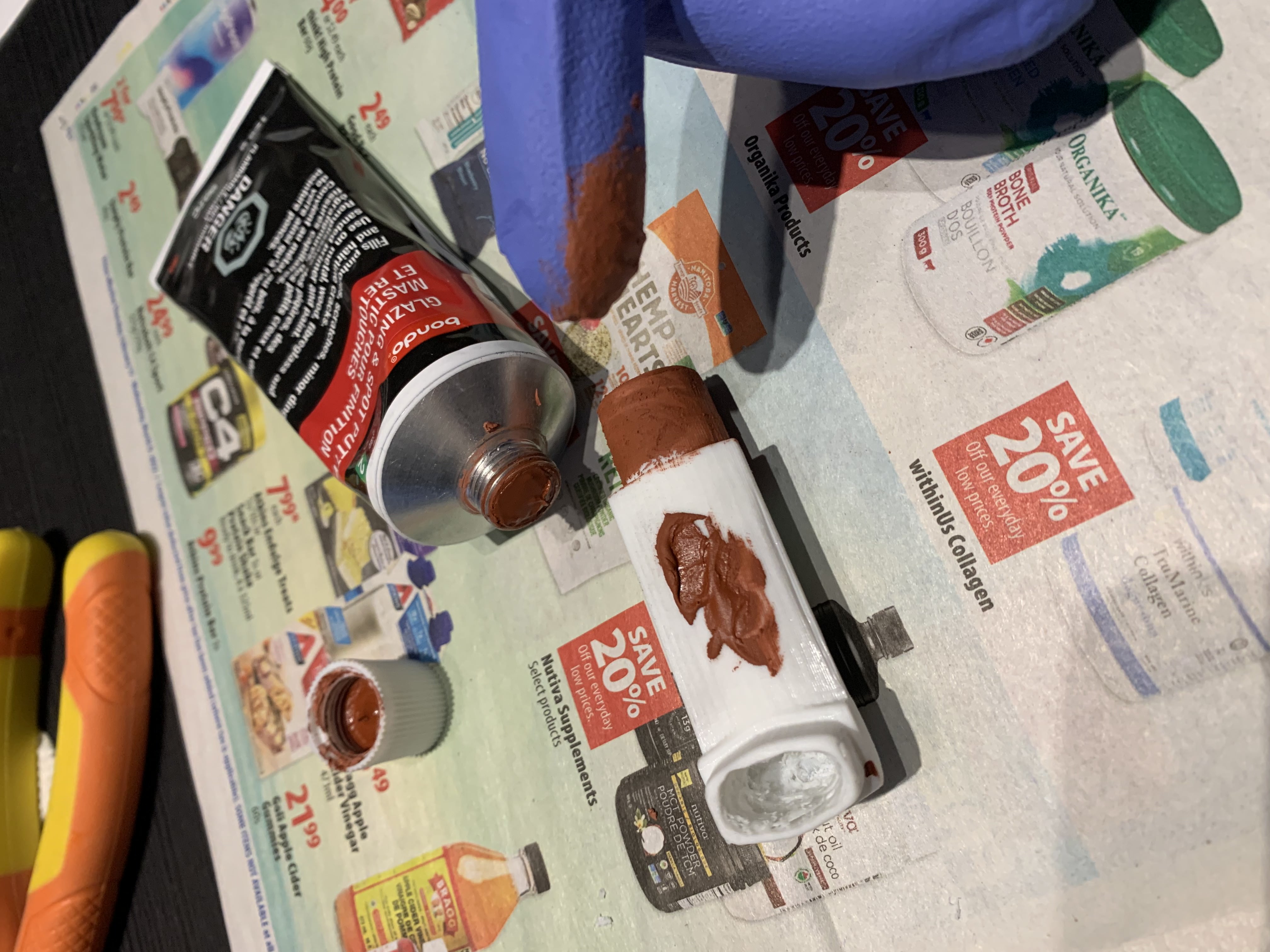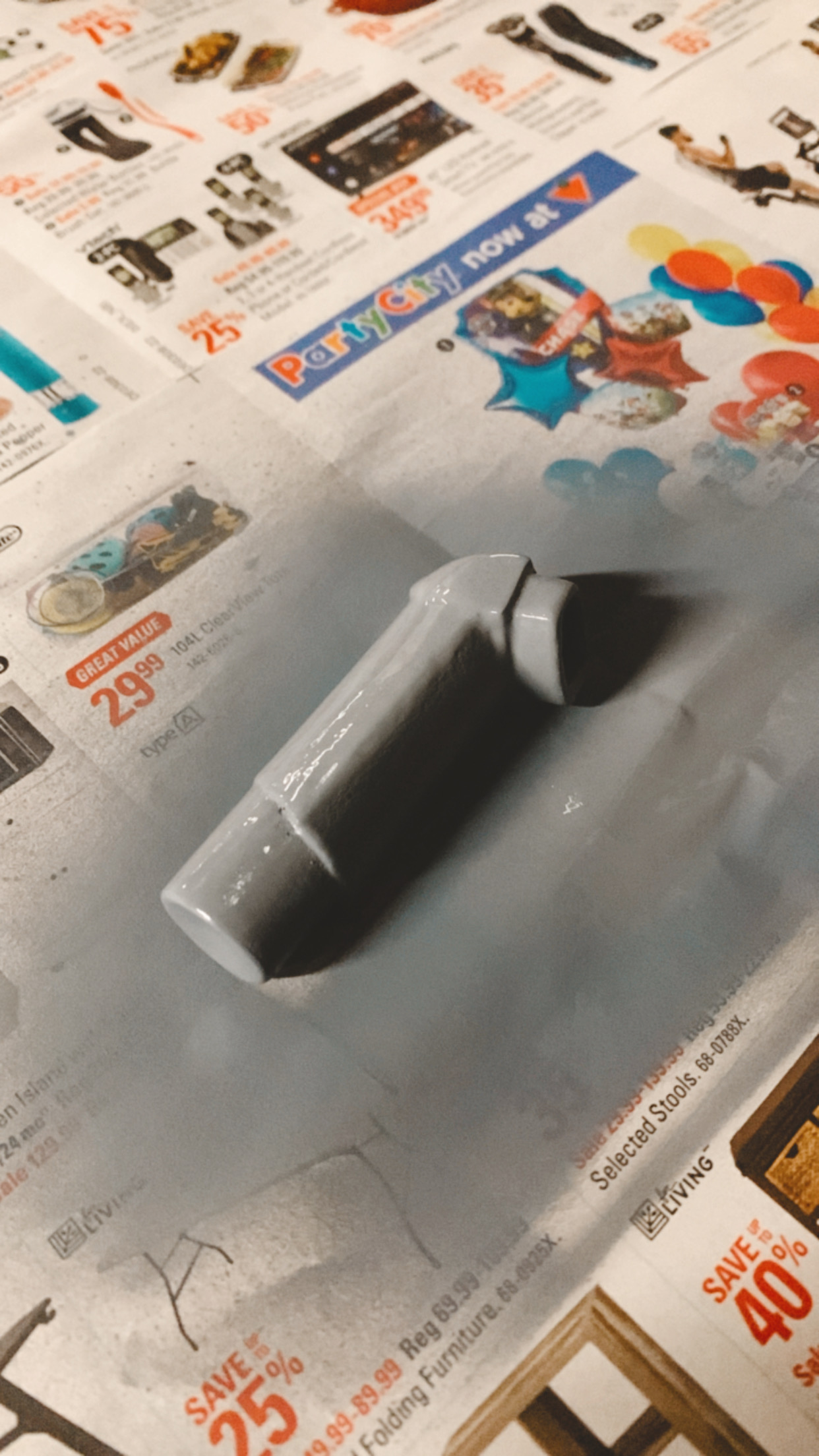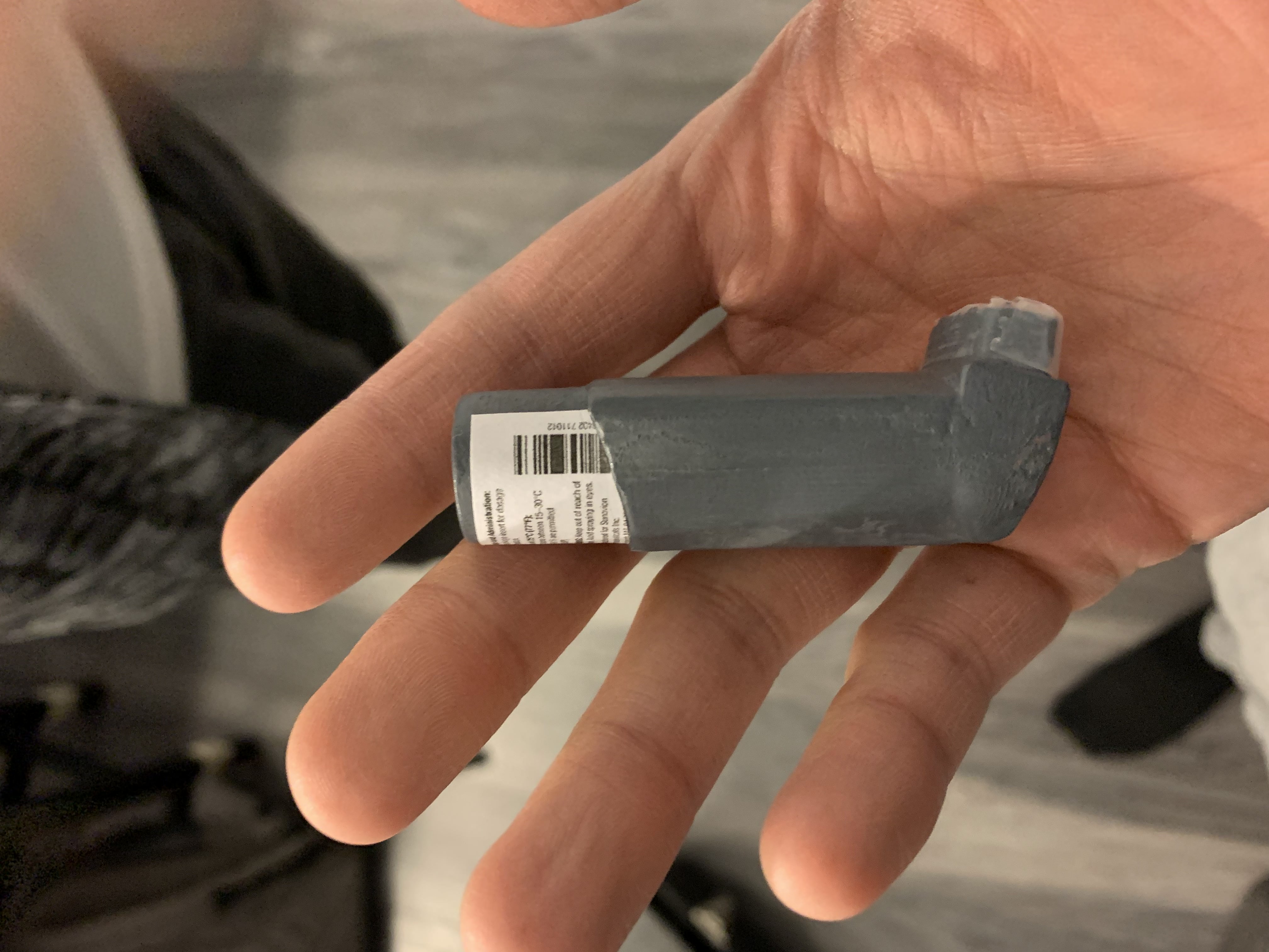 Since we were unable to obtain an asthma inhaler as it was a prescription medication, we then decided to make our own with 3D printing. In this process, I prepared a simple 3D model in the shape of an inhaler in Maya. Then, I asked a friend who owns a 3D printer to help us out.