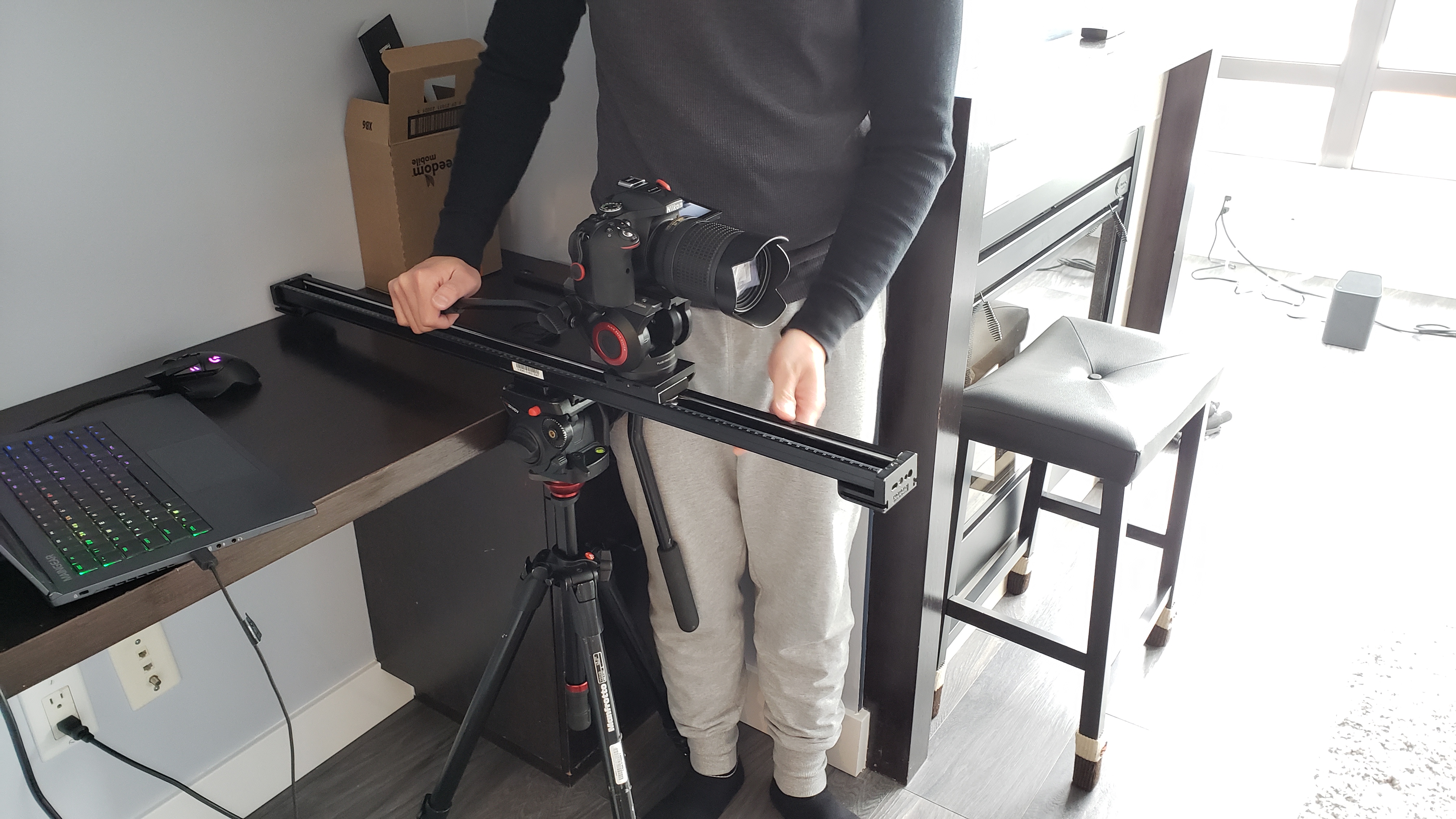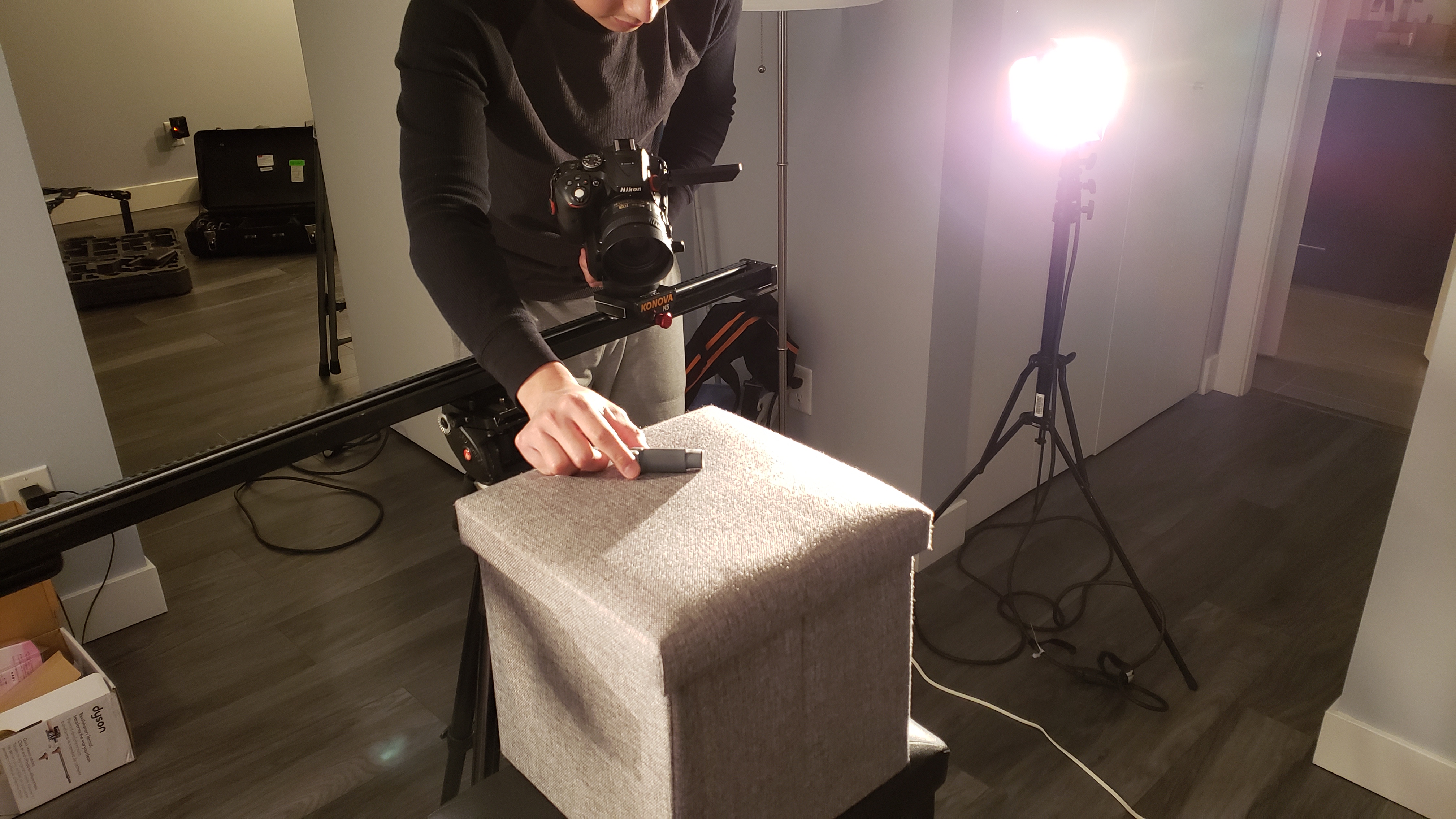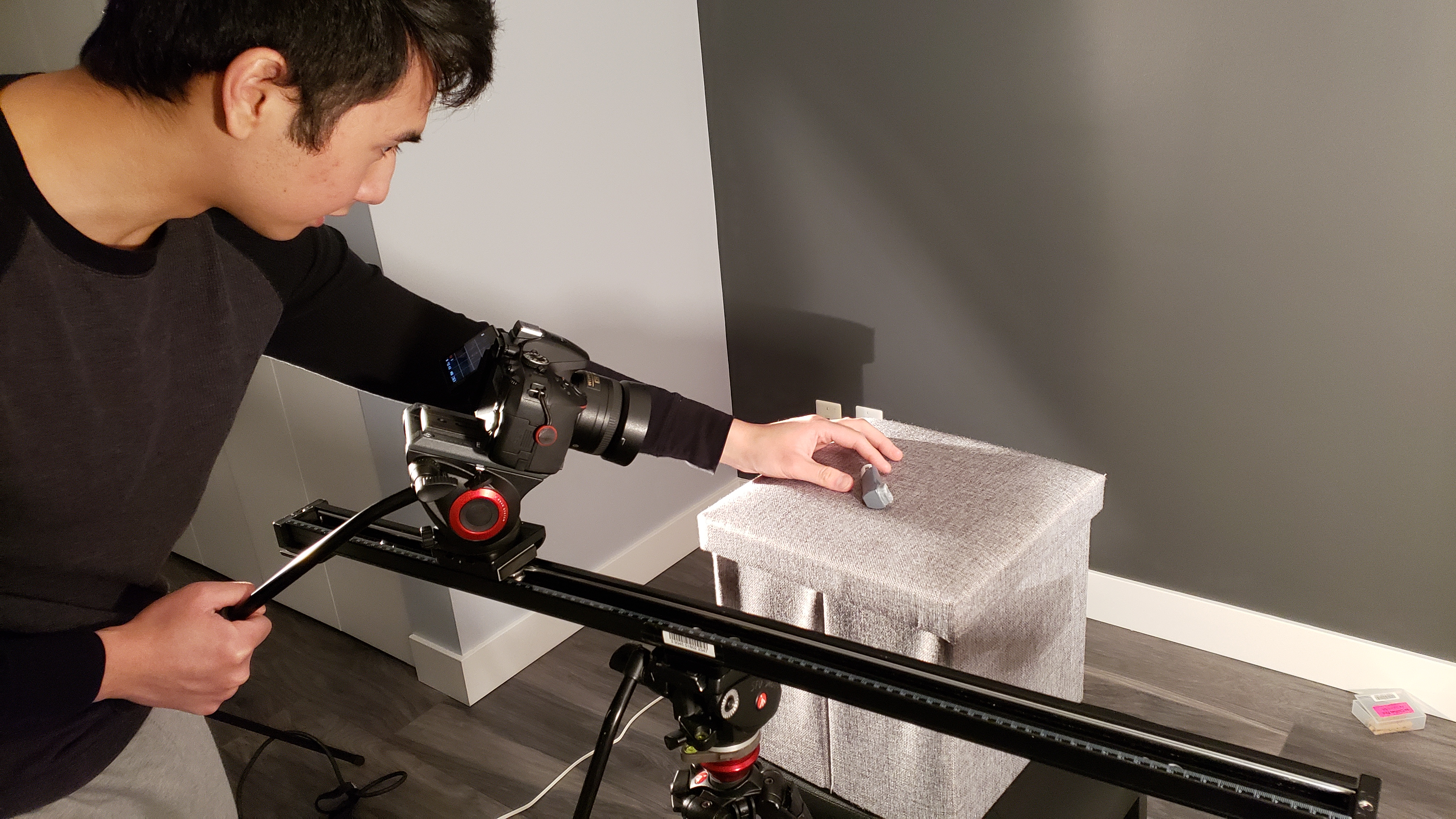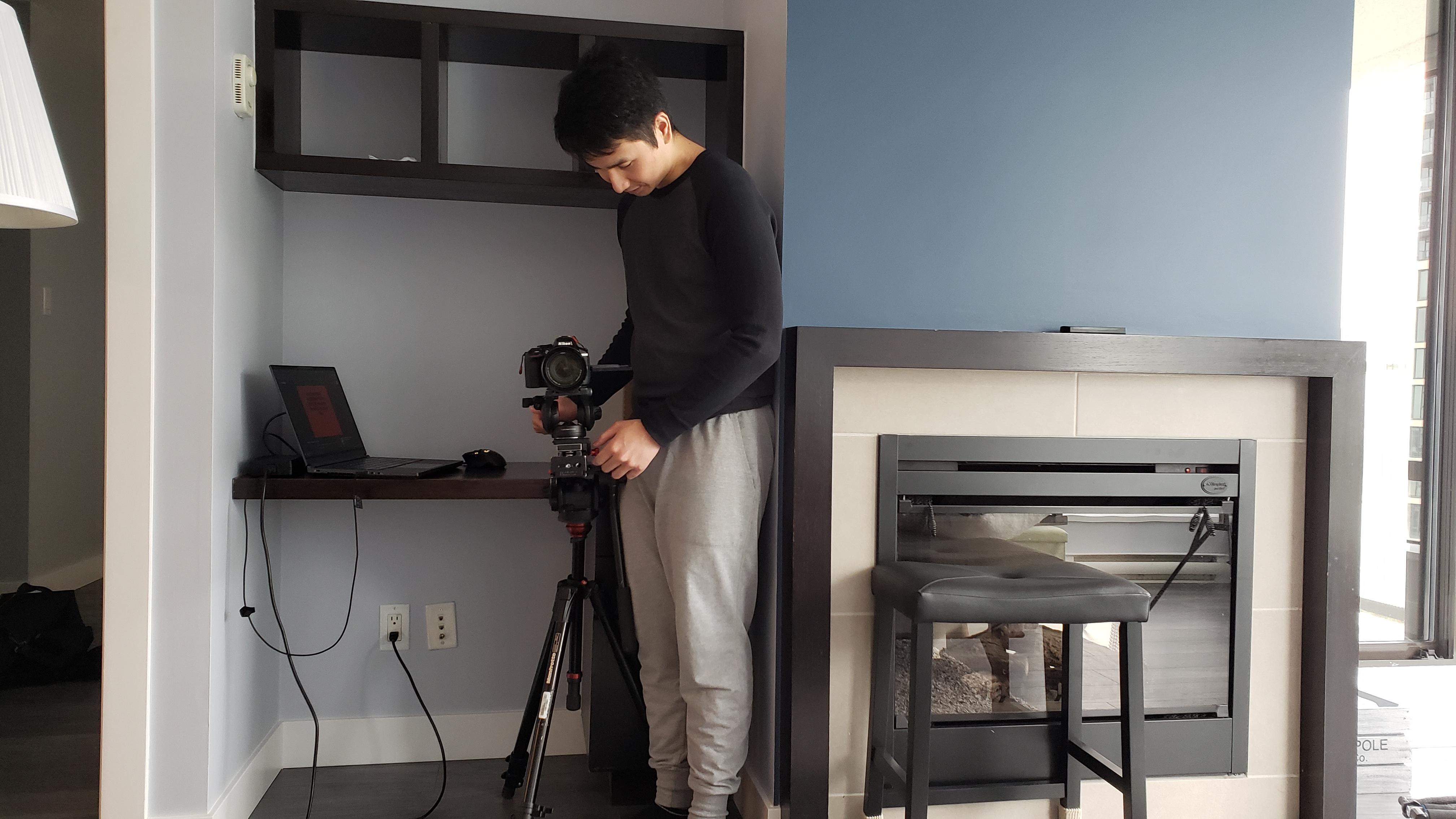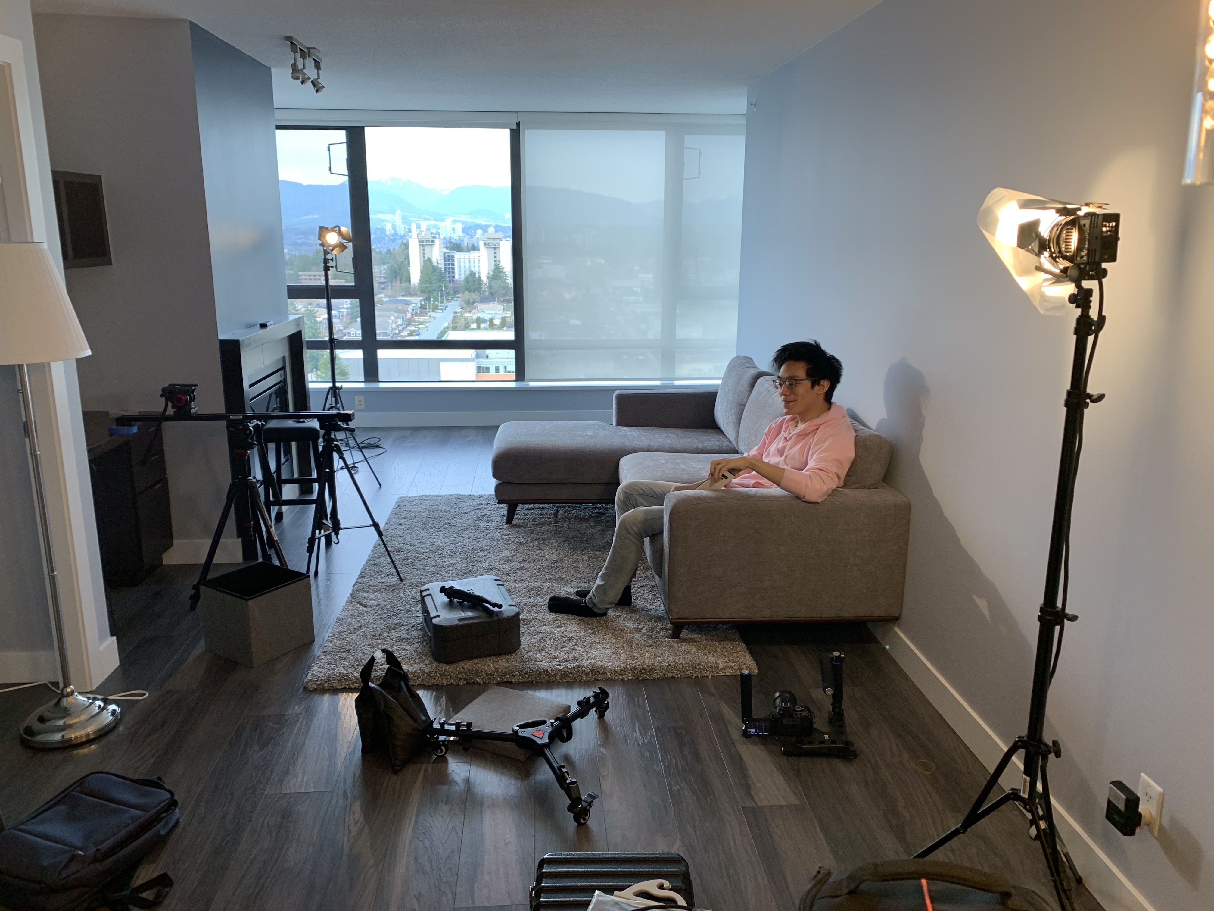 At this stage, we spent 4 days throughout the month shooting our film, which includes additional shots and reshoots as suggested from the feedback that we received during class. During the production, other than being the actor in our film, I have also directed how the camera, lighting, and environment should be set up. Since we filmed in a small condo unit, it was challenging to set up the camera and lighting in a confined living room, such that we had to find ways to work around it. Therefore, instead of shooting with a 35mm prime lens as we did for all other shots, I switched it to a wider 18mm to 85mm zoom lens and set it to 18mm for the living room frontal shot.